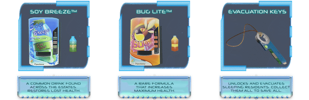 ● Escape Keys unlock the pods of still-sleeping residents. Collect them all to rescue everyone and reach the best ending.